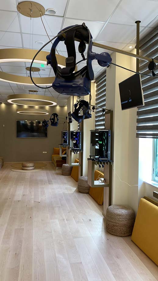 VR HUB is a highly aesthetic, luxurious, environmental open space venue, a pioneering creation of Mindscape SNS, which brings businesses in touch with Virtual Reality as a Means of Work, Collaboration, Training, Team Building, Entertainment, Game, Fun, and Social Networking.